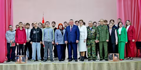 В Шкловском государственном колледже для призывников прозвучали напутствия от председателя районного Совета депутатов Александра Давыдовича, военного комиссара Шкловского района Александра Осипенко, председателя районной организации ОО «Белорусский союз ветеранов войны в Афганистане» Игоря Подолякова, председателя Шкловской районной организации ОО «Белорусский союз женщин» Галины Марфель.