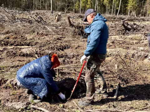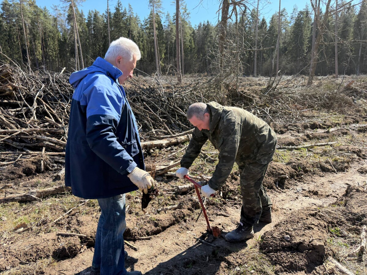 Вблизи деревни Хилец члены районного исполнительного комитета и работники райисполкома обновили лесной фонд саженцами ели и ольхи.