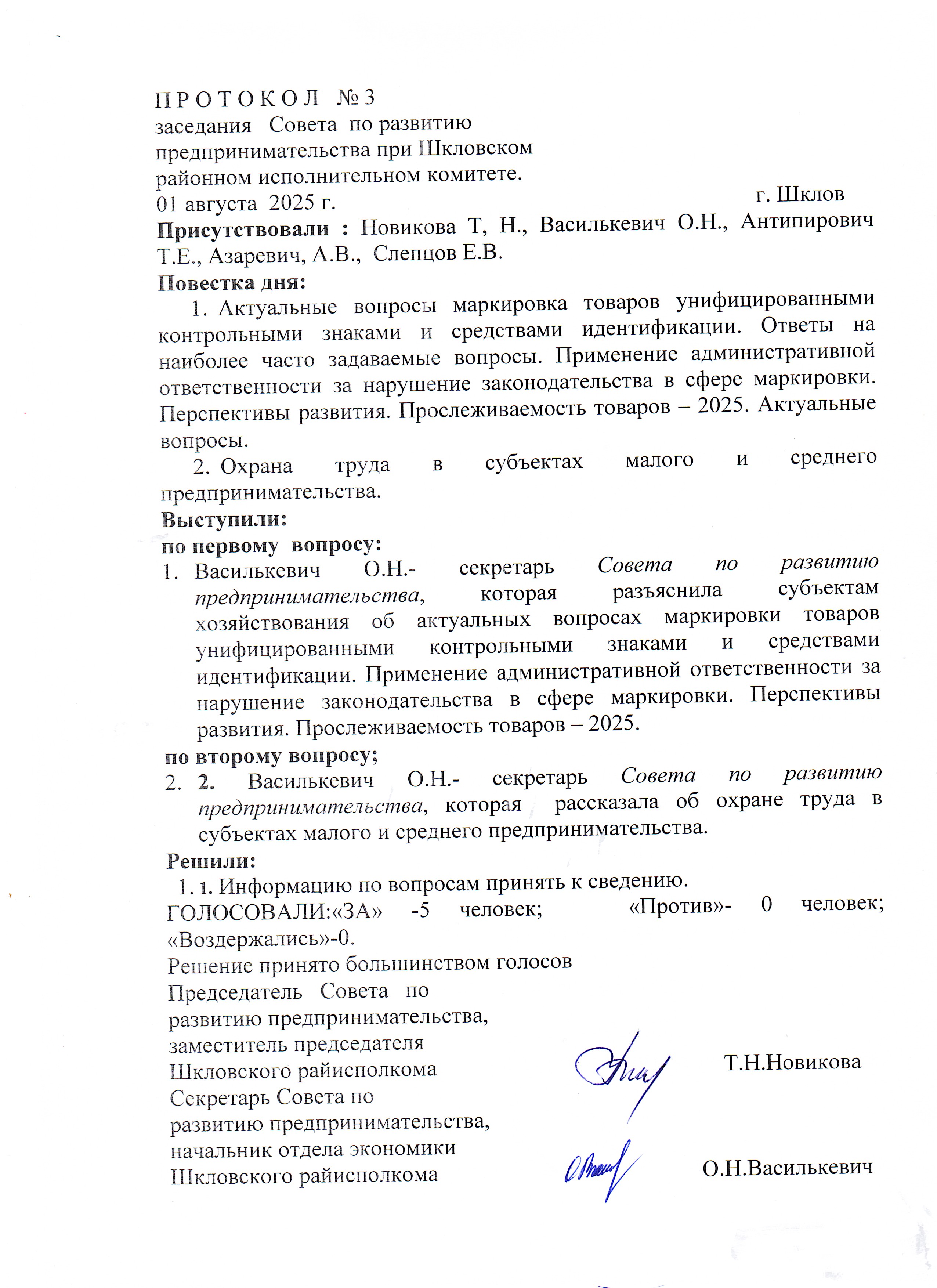 Протокол № 5 2022 Совета предпринимателей