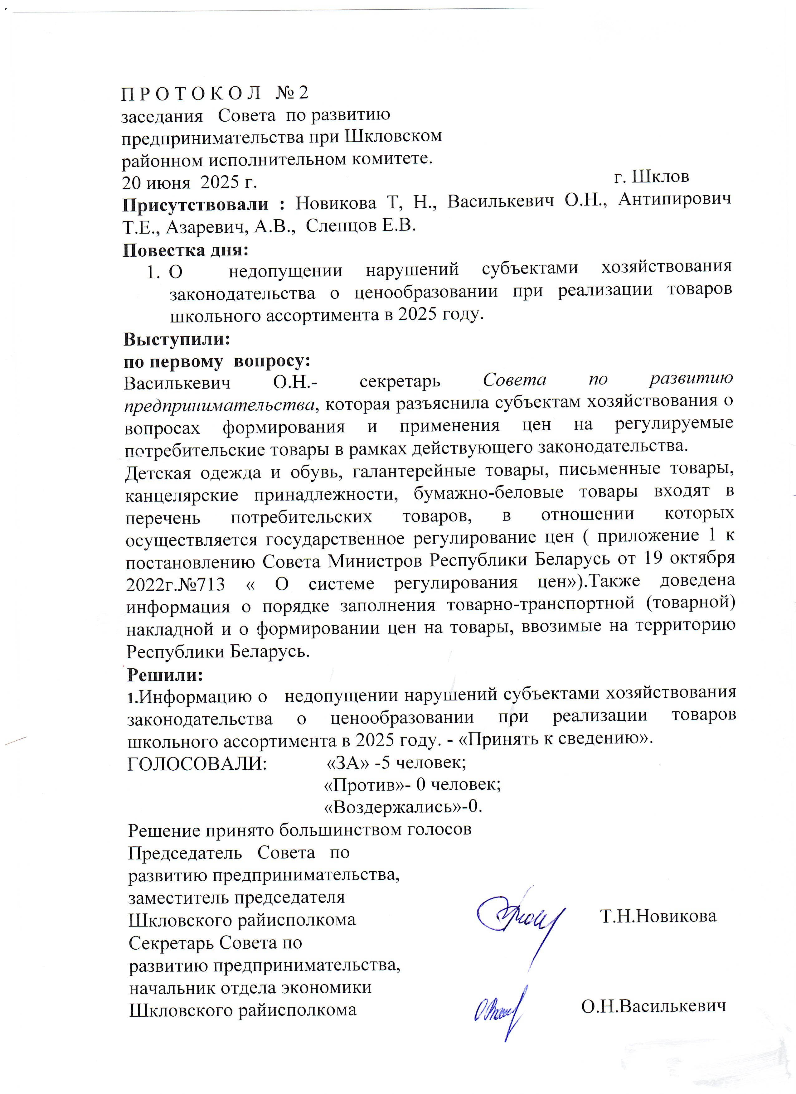 Протокол № 6 2022 Совета предпринимателей
