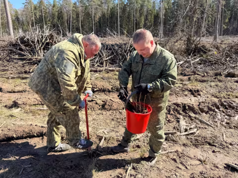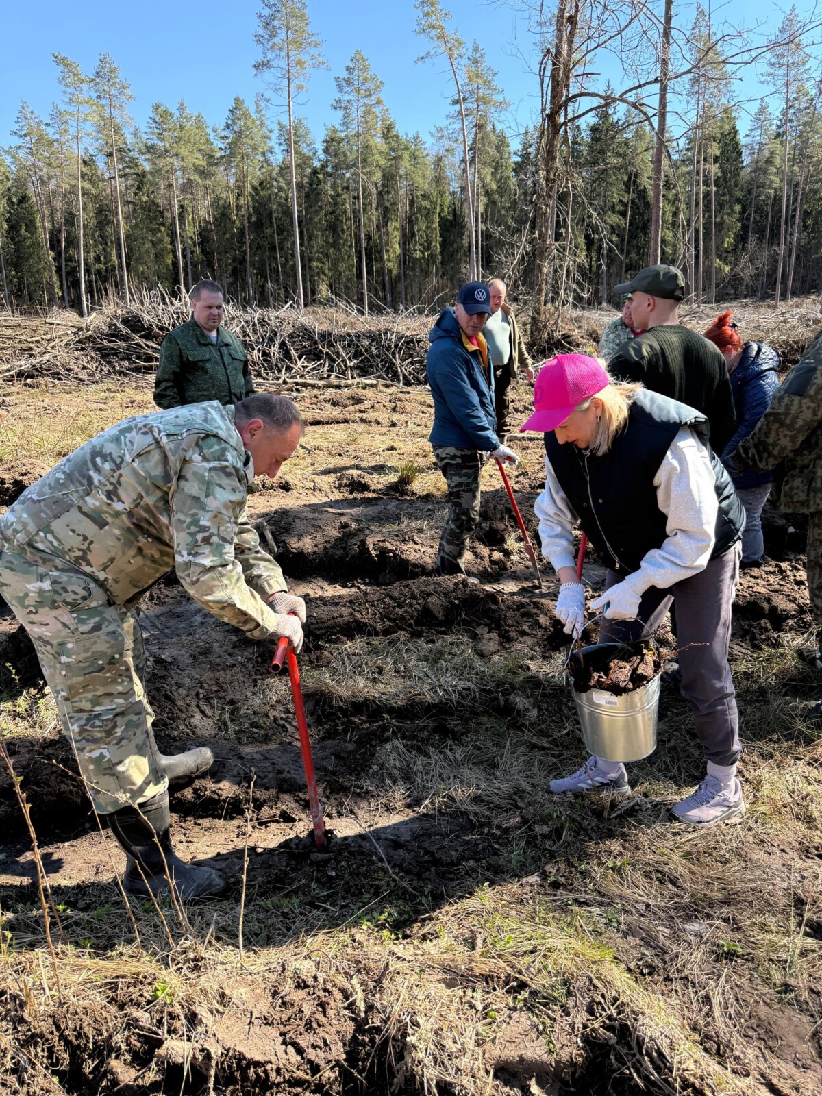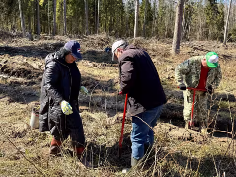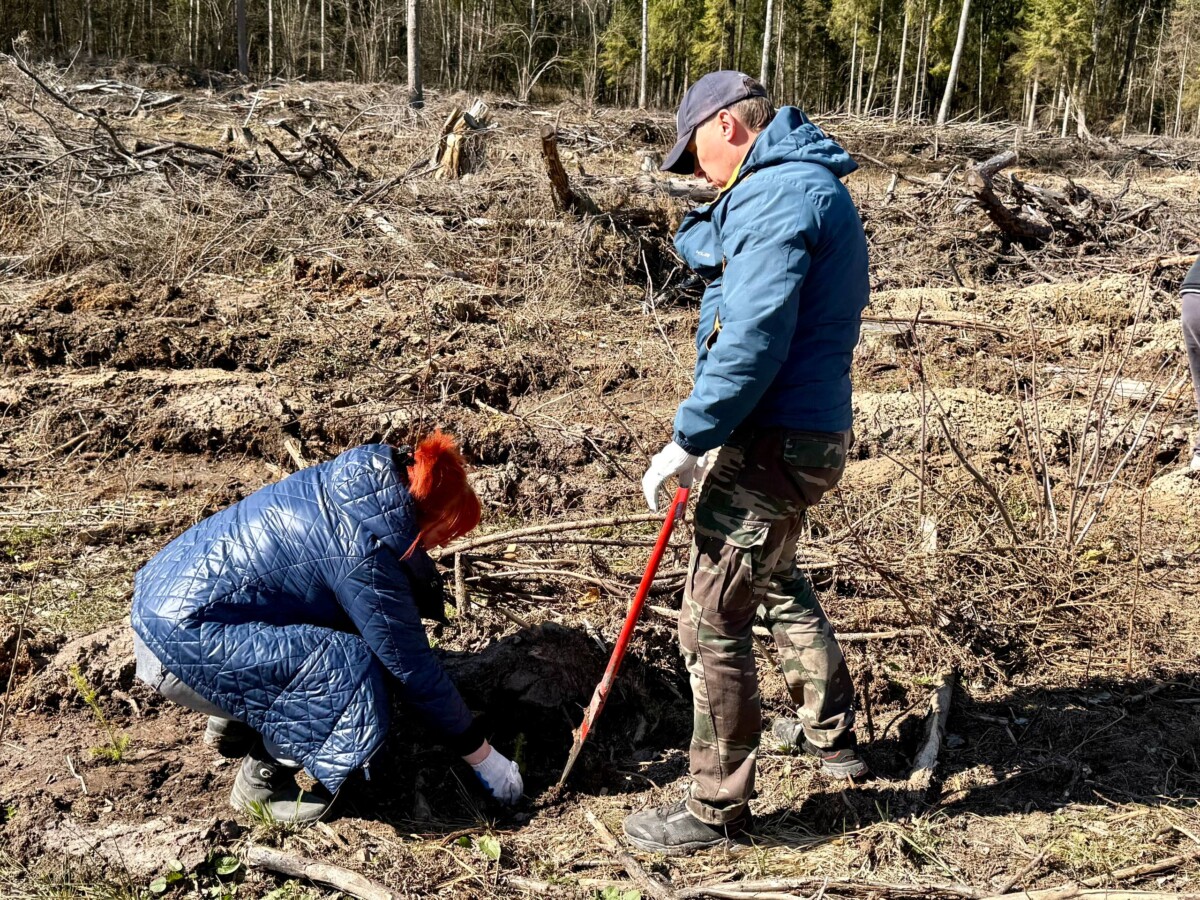 Вблизи деревни Хилец члены районного исполнительного комитета и работники райисполкома обновили лесной фонд саженцами ели и ольхи.