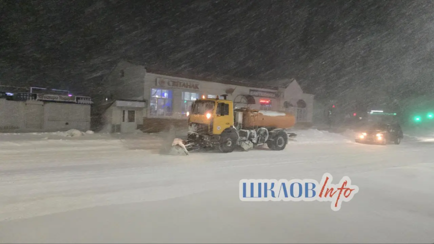 В Шклове сегодня активно ведётся расчистка снега — в работе задействованы не только спецтехника, но и люди.