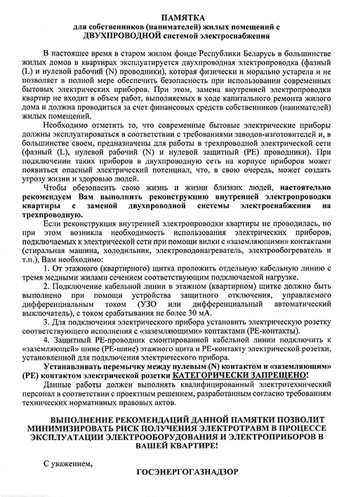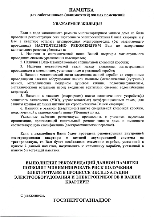 ПАМЯТКА по подключению электроустановок